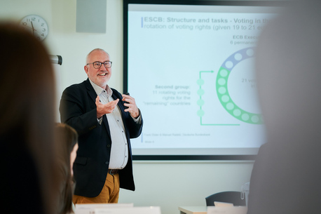 Once the ice breakers were out of the way, Frank Elster (DBB), started the course with an overview of the European System of Central Banks (ESCB) and the Single Supervisory Mechanism, giving participants an idea of the overall framework within which ESCB central banks work, while Manuel Radetz (DBB) and Andreas Furm-Hazivar (OeNB) elaborated on the their respective central banks.