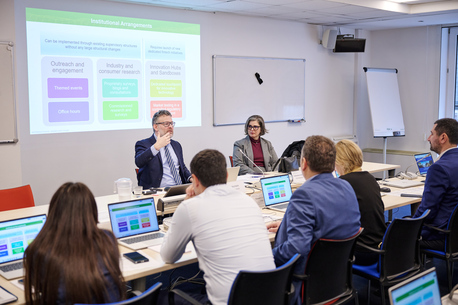 Interactive learning and peer exchange were central to the course design. Facilitators encouraged participants to share fintech developments form their own jurisdictions, while group exercises enabled them to apply theorical concepts to hypothetical scenarios and real-life cases.